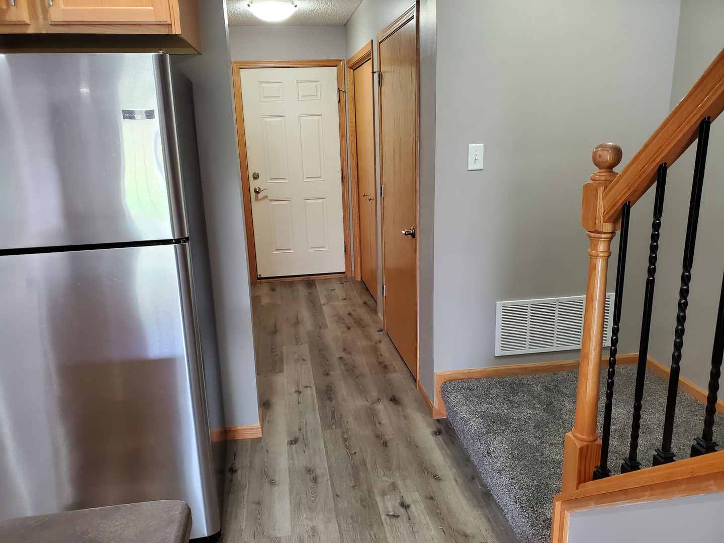 The upper level includes two bedrooms with great closet space and bright windows, as well as a full bathroom.