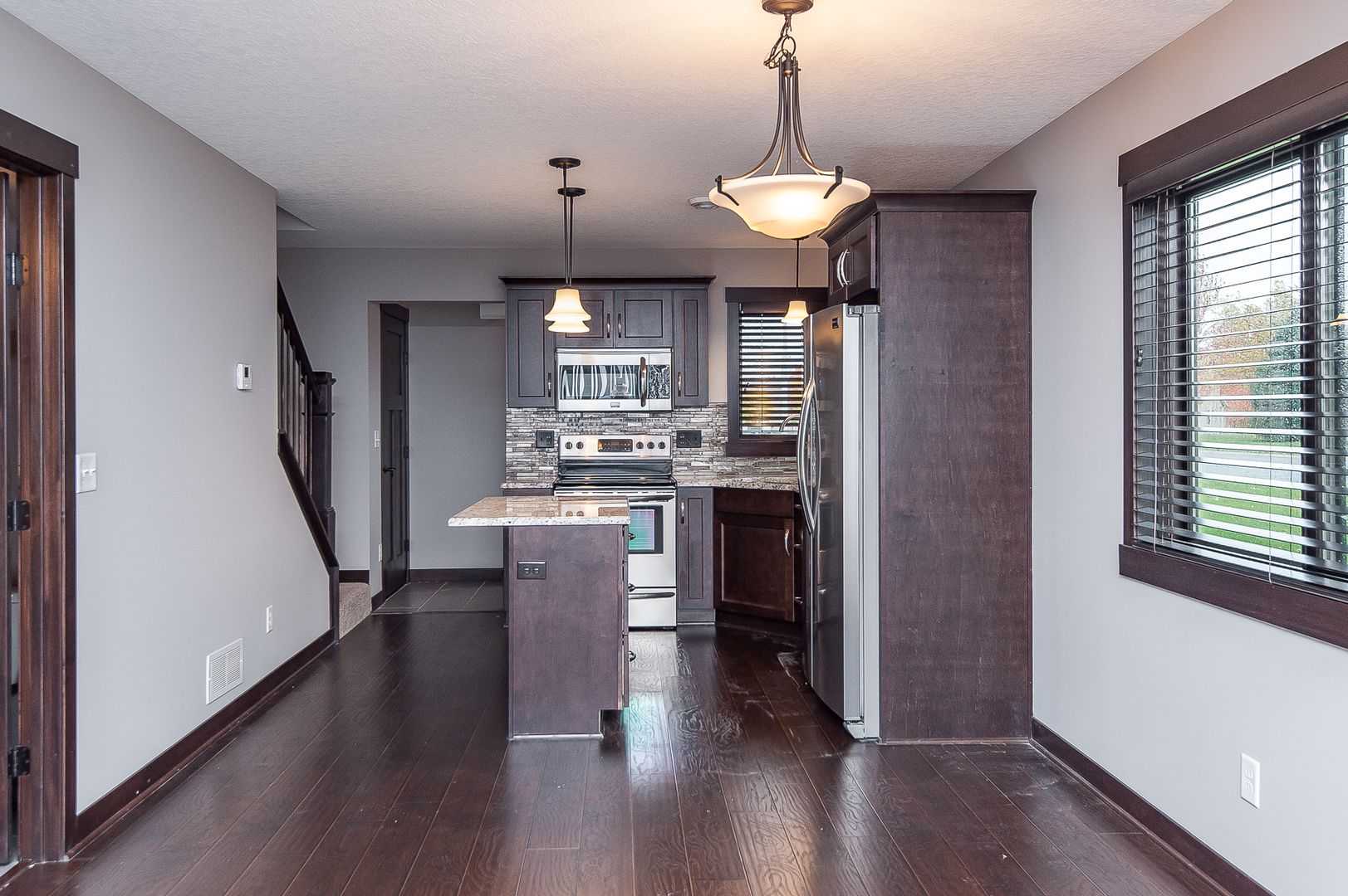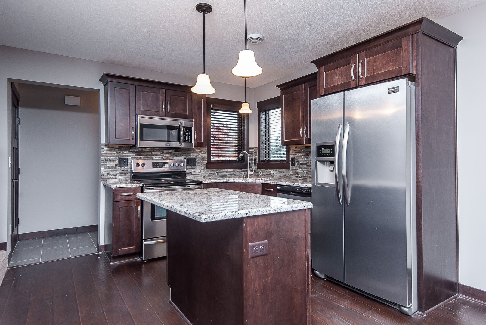 This cozy townhome features a 2-bedroom, 1.5-bathroom floorplan with an open concept layout that invites all lifestyles. The kitchen offers Frigidaire stainless steel appliances and a centralized stone-top island, with a welcoming transition to a spacious living room finished off with fireplace and stone mantle. This townhome's sliding doors open up to a backyard patio area, perfect for grilling and an attached private garage.